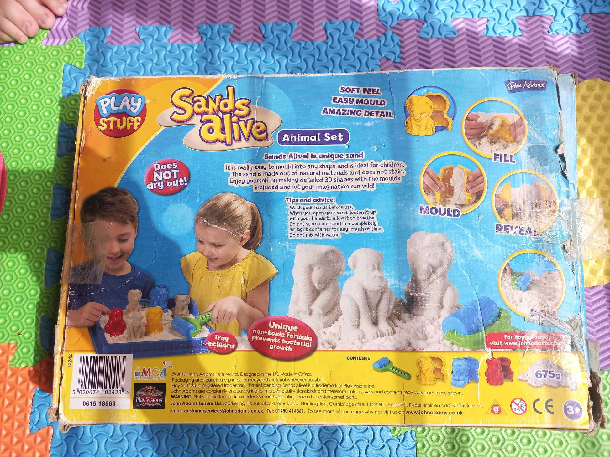 1 tray, 1 spoon, 1 roller and kinetic sand